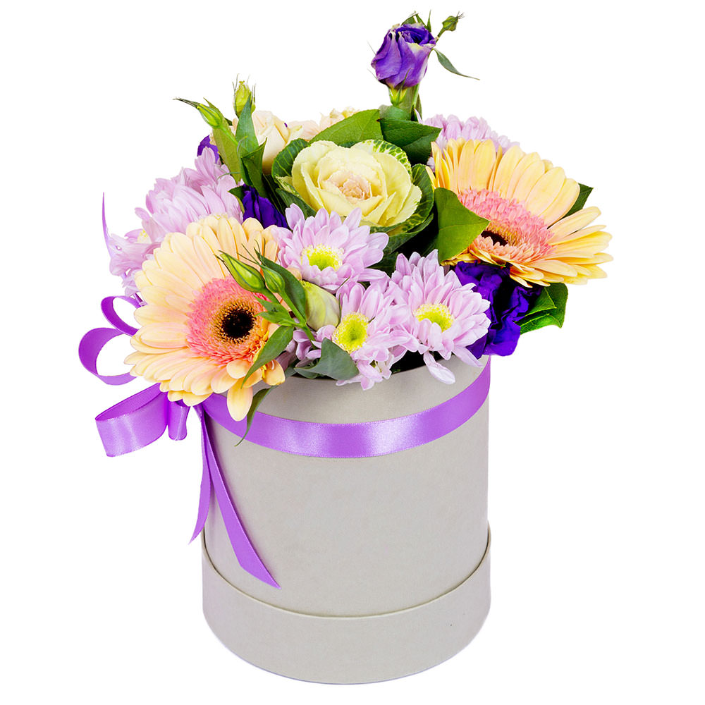 Гербера, хризантема, брасика, эустома.